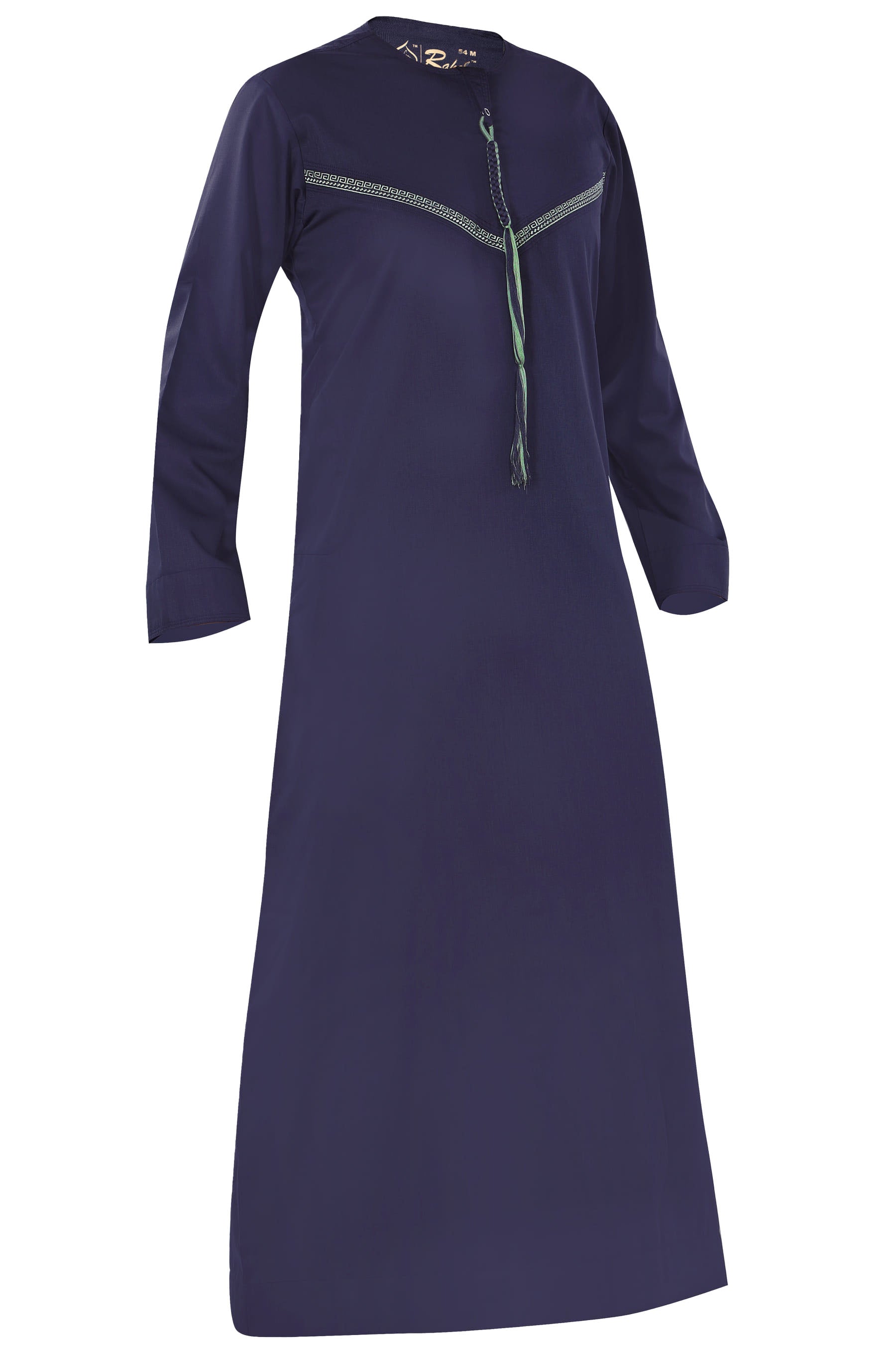 Each thobe features fine Omani craftsmanship, highlighted by intricate tarboosh embroidery around the neckline and chest, and finished with the iconic perfumed “farakha” tassel for an authentic cultural touch.